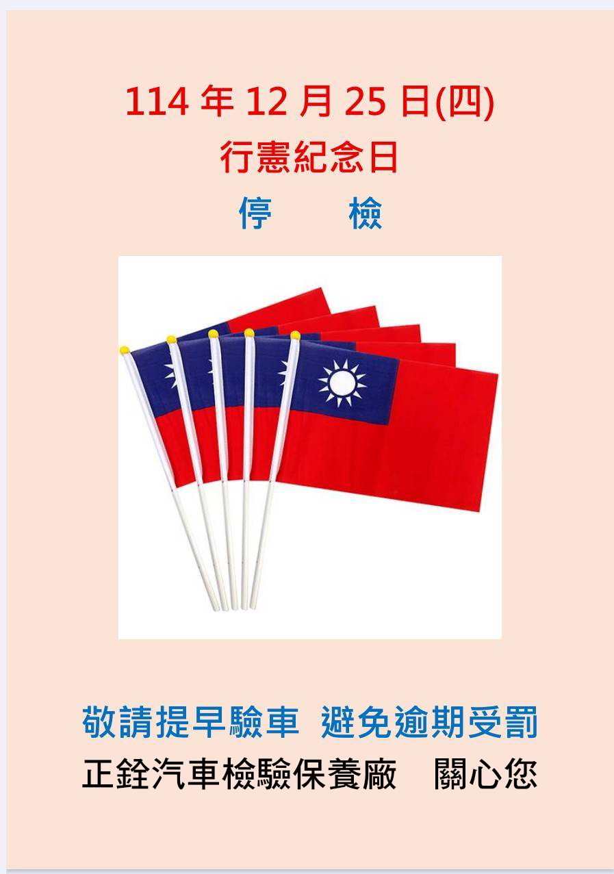 「行憲紀念日」12月25日(四) 停檢公告 |